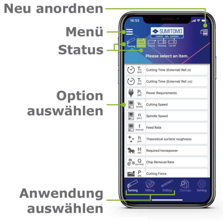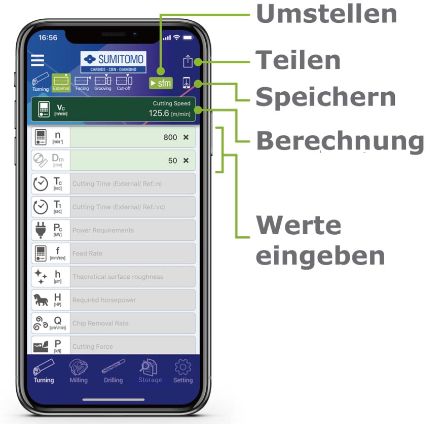 Berechnen Sie mit unserem SumiTool Calculator die optimalen Bearbeitungsparameter für das Drehen, Fräsen und Bohren.