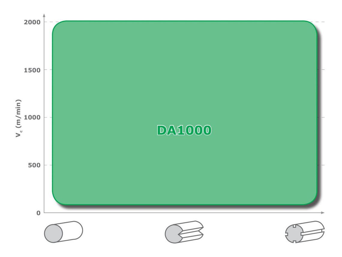 - Lange, stabile Standzeiten durch zähes PKD-Substrat DA1000