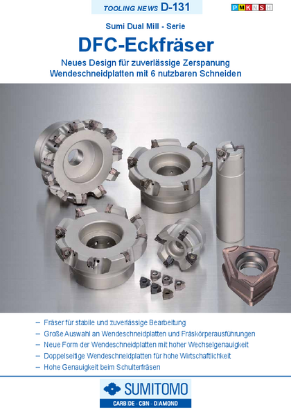 Der Sumi Dual Mill DGC-Fräser erzielt durch den Einsatz der doppelseitigen Platten eine exzellente Wirtschaftlichkeit. Die neue Super-ZX-Beschichtung und der sehr gute Planverlauf sind gute Voraussetzungen für lange Standzeiten und hervorragende Oberflächenqualitäten in allen Anwendungsfällen.