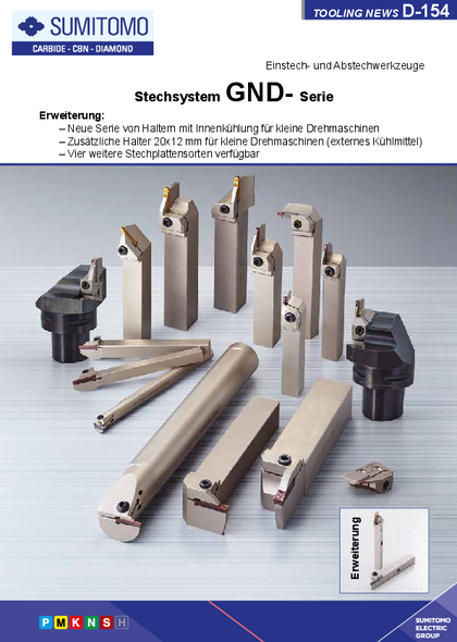 Das GND-Stechsystem wurde um den GNDISTyp erweitert, der zum Stechen in kleinen Bohrungsdurchmessern ab 14mm geeignet ist. Zur Reduzierung von Vibrationen beim Stechen werden die Halter aus Sonderwerkzeugstahl in Monoblockbauweise gefertigt.