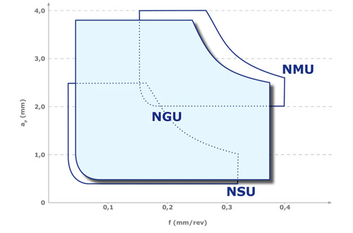 Der NGU-Spanbrecher für positive Wendeschneidplatten ist dank seiner breiten Spantasche in einer Vielzahl von Bearbeitungen einsetzbar. Die glatte und schräge Fläche des Spanbrechers reduziert die Schnittkräfte und verhindert Vibrationen.