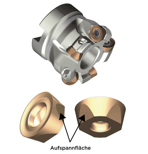 Kompatible Nutzung des Fräskörpers durch optimiertes Design der Aufspannfläche