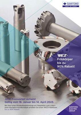 Bei Kauf einer Mindestbestellmenge an Fräsplatten zum Listenpreis abzüglich Kundenrabatt erhalten Sie einen WEZ-Fräskörper bis zu 90% Rabatt.