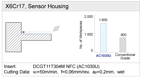 AC6000M Series offer grades for stainless steel cutting with excellent wear and fracture resistance.