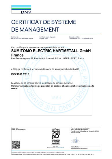 Certificat: DIN EN ISO 9001:2015Valable jusqu'au: Décembre 2024