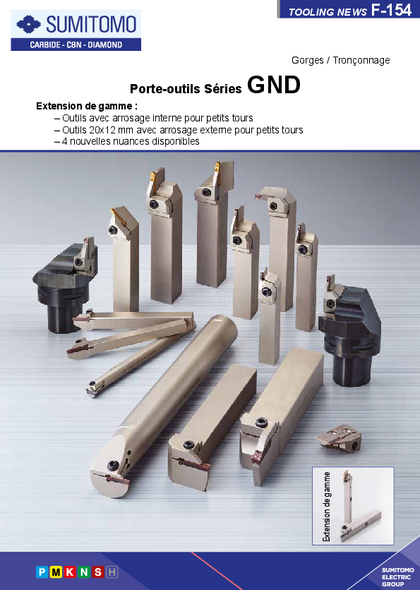 Extension de la gamme GND incluant des nouveaux corps DIN avec arrosage interne avec deux trous directionnels et précis assurant un refroidissement et une lubrification optimisés. GND montre de meilleures performances avec un excellent contrôle copeaux et une durée de vie plus élevée.