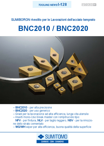 BNC2010 e BNC2020 sono gli ultimi gradi rivestiti aggiunti alla serie Sumiboron, per garantire maggior stabilità e vita utensile più lunga nelle lavorazioni degli acciai induriti.