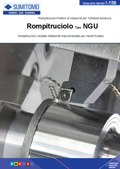 Sviluppato il nuovo rompitruciolo per inserti positivi NGU che consente ampie variazioni di condizioni di taglio grazie all’ampio vano truciolo. La preparazione tagliente positiva ed affilata riduce le forze di taglio e previene le vibrazioni.